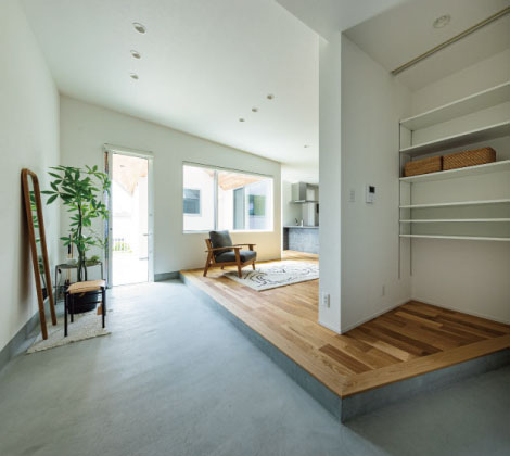 広い土間を家族のフリースペースとし、ペットと過ごしたり、趣味を楽しんだり、友達や家族とお茶やBBQをしたり…自然とみんなが「LAUGH」になれる暮らしを実現できます。