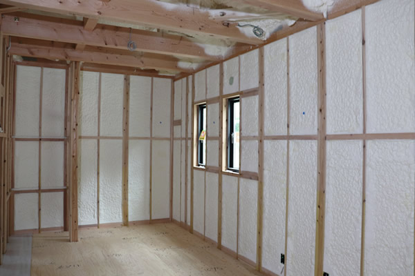 冬暖かく、夏涼しい快適な室内環境の実現と、健康に優しい住まいのために、水で発砲するマシュマロ断熱材を採用しています。