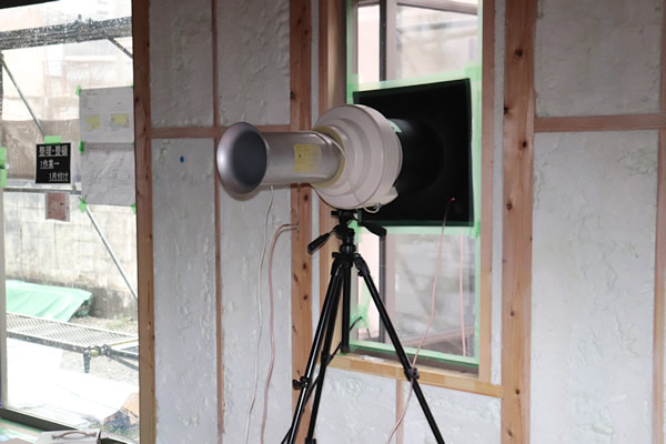 気密測定とは住宅の隙間の面積を専用の機械を使って測定することで、0に近いほど理想とされ、1.0 ㎠/㎡を切る住宅であれば気密性の良い住宅とされています。